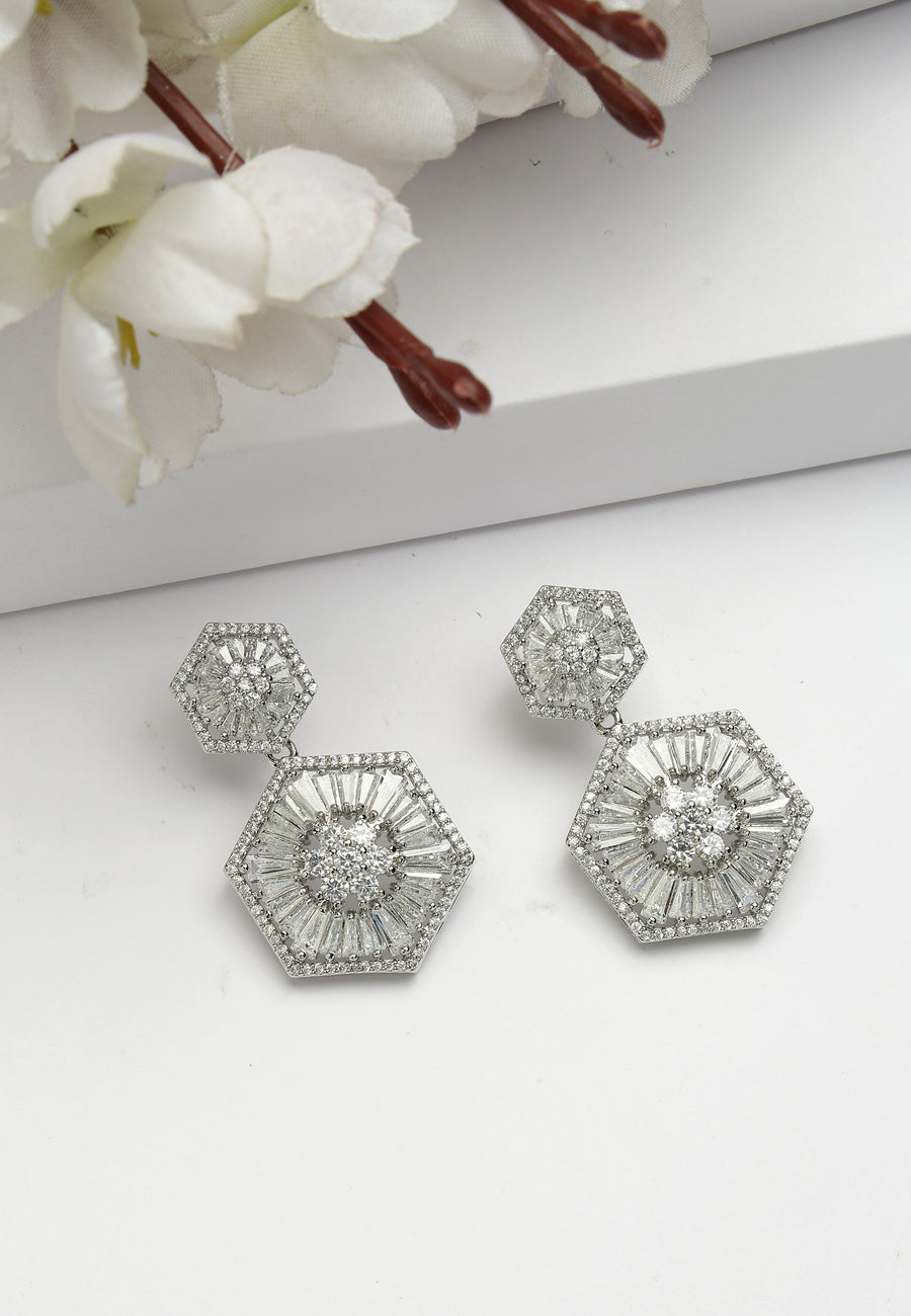 Pynt dig selv med den tidløse sofistikering af disse zirkon klynge øreringe i uberørt hvid. Zirkonstenenes strålende gnistre tilføjer et strejf af udstråling og tiltrækning til designet og fanger lyset...