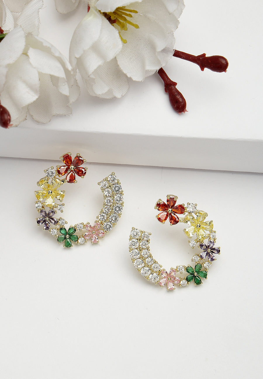 Cubic Zirconia Statement øreringe i flerfarvet med røde, gule, lilla, pink og grønne sten skaber et levende og iøjnefaldende tilbehør, der giver et modigt fashion statement. Disse øreringe har et...