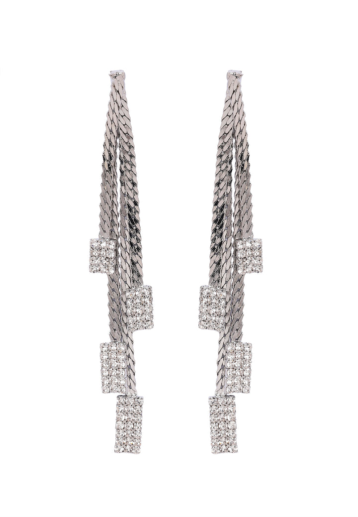 The delicate chain design, adorned with sparkling square-shaped stones, creates a captivating and elegant look. They're a statement piece that exudes sophistication and charm, perfect for adding a touch of glamour to any outfit.