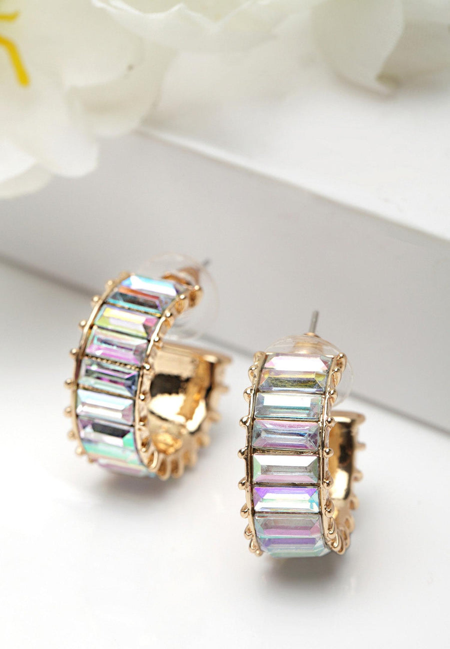 Estos cautivadores pendientes de aro irradian una luminiscencia refrescante y mentolada. Cada aro está meticulosamente elaborado con una serie de cristales de corte cuadrado, de un verde pálido, engastados en...