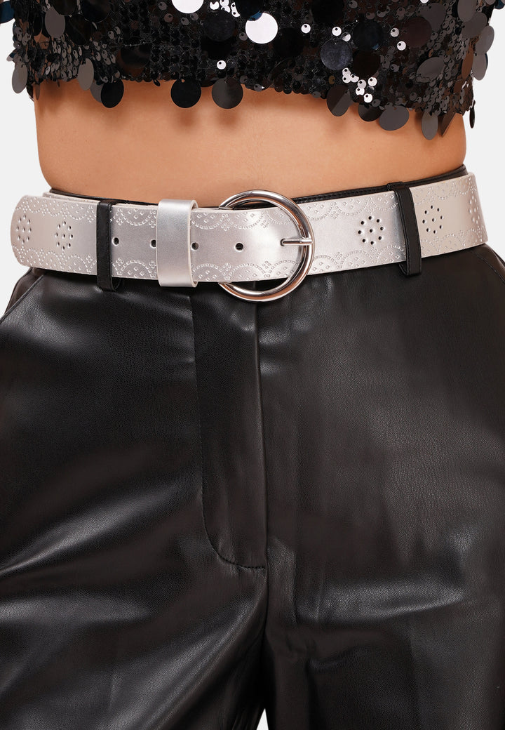 Contemporary Designer Round Buckle Belt hopeanvärisenä on tyylikäs ja moderni tulkinta klassisesta asusteesta, yhdistäen sileän nahan ja erottuvan pyöreän soljen, joka huokuu ylellisyyttä ja huippuluokan muotoilua. Pyöreä solki, jossa usein on minimalistisia tai hienostuneita yksityiskohtia, luo vahvan keskipisteen, joka lisää sekä hienostuneisuutta että nykyaikaista särmää mihin tahansa asuun. Tämä vyö yhdistää saumattomasti perinteisen tyylin ja modernin estetiikan, tehden siitä monipuolisen asusteen monenlaisiin tilaisuuksiin. Pyöreä solki antaa asulle viimeistellyn, suunnittelijamaisen ilmeen, joka kohottaa työvaatetuksesi.