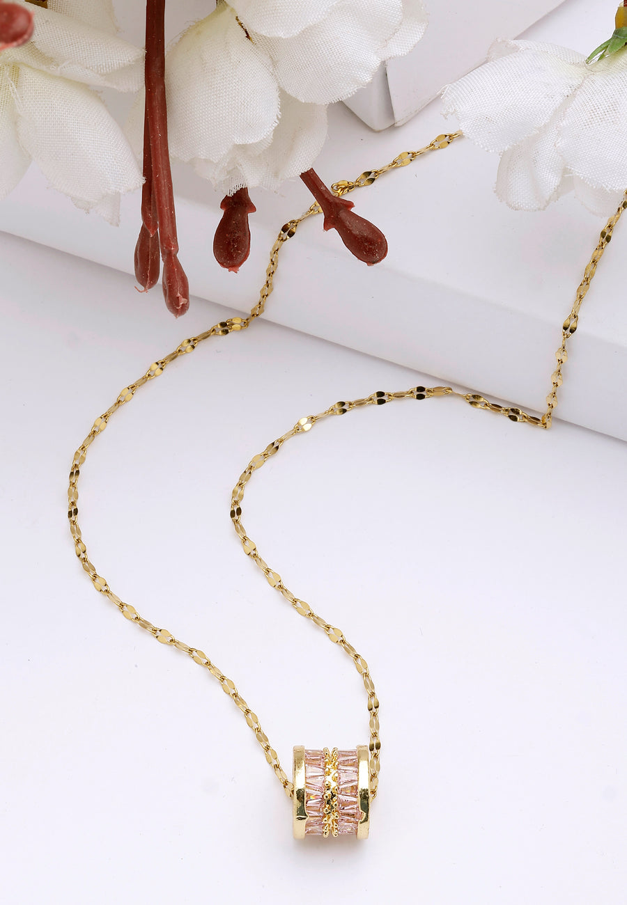 Le collier chaîne enlaidé de cylindre élégant, featuring une chaîne de couleur or avec un cylindre en zircon cubique rose, est une pièce accrocheuse. Le point focal du collier est...