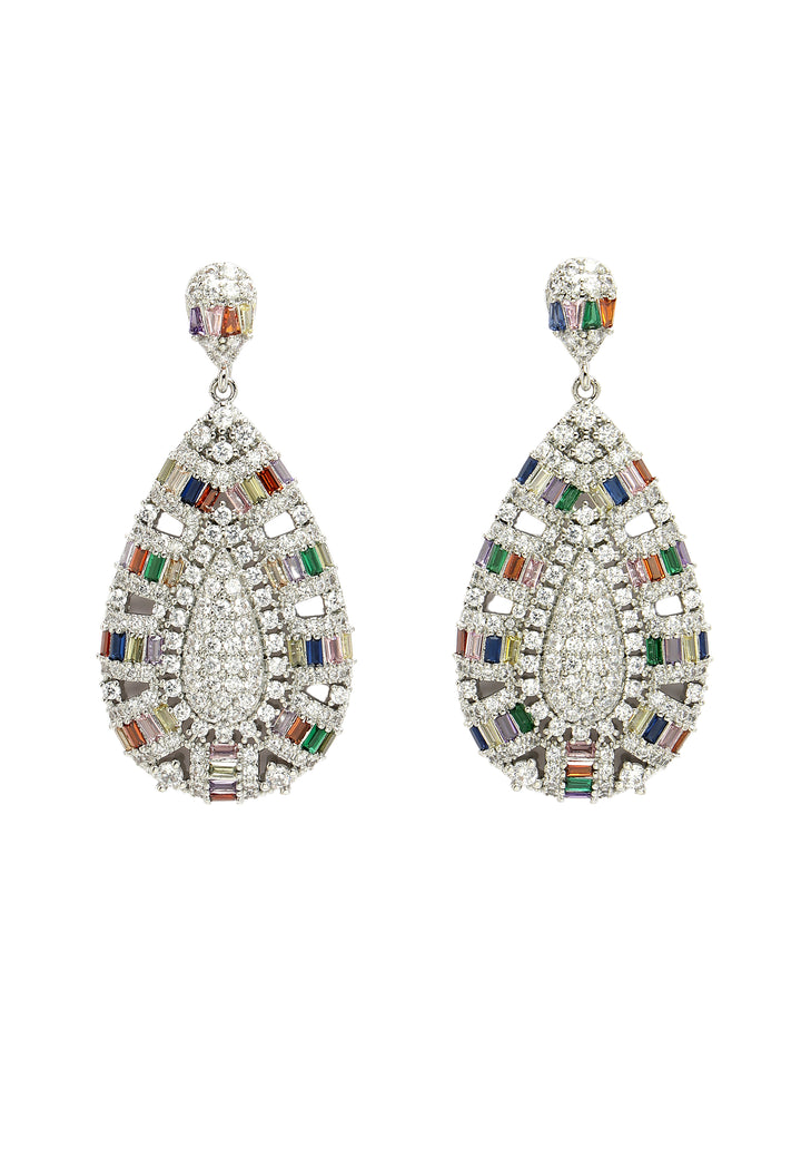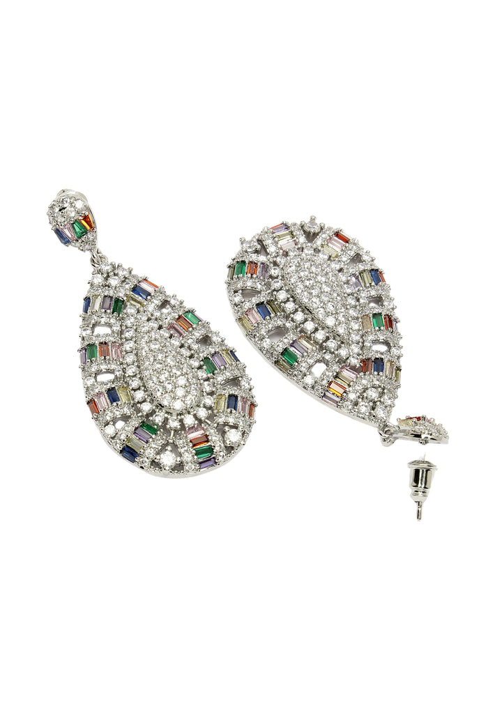 Gli orecchini pendenti Royal Cubic Zirconia in argento con pietre multicolor all'angolo della goccia sono un accessorio regale e incantevole che trasuda glamour e raffinatezza. La combinazione dell'elegante montatura in argento e delle vivaci pietre multicolori crea un contrasto sorprendente, rendendo questi orecchini un pezzo di tendenza che sicuramente farà girare la testa. Perfetti sia per eventi formali che per occasioni speciali, questi orecchini aggiungono un tocco di eleganza regale a qualsiasi completo. gli orecchini pendenti Royal Cubic Zirconia in argento con pietre multicolori ti faranno sentire come un re.