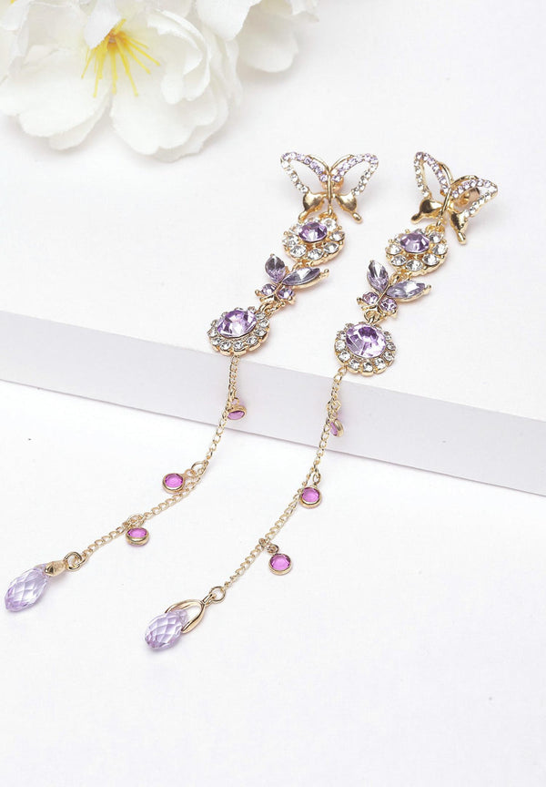 Deze oorklimmers hebben een delicate schikking van diep paarse, marquise-vormige stenen, die de ingewikkelde patronen van vlinder vleugels nabootsen. Kleine kristallen voegen een vleugje etherische sprankeling toe, waardoor een gevoel...