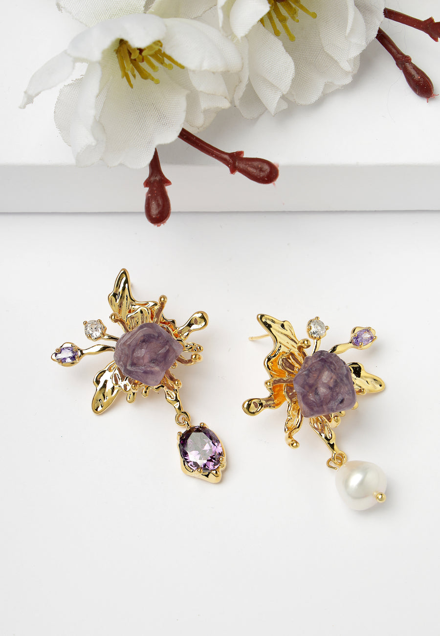 Te niedopasowane kolczyki oferują zabawną, a jednocześnie elegancką asymetrię. Jeden kolczyk ma delikatny, kryształowy kwiatowy wkręt, podczas gdy drugi to długa, liniowa kaskada błyszczących motywów kwiatowych. Kontrastujące długości i zjednoczona...