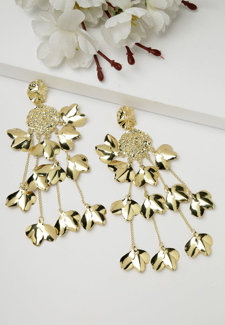 Długie kolczyki wiszące z błyszczącymi żółtymi liśćmi
