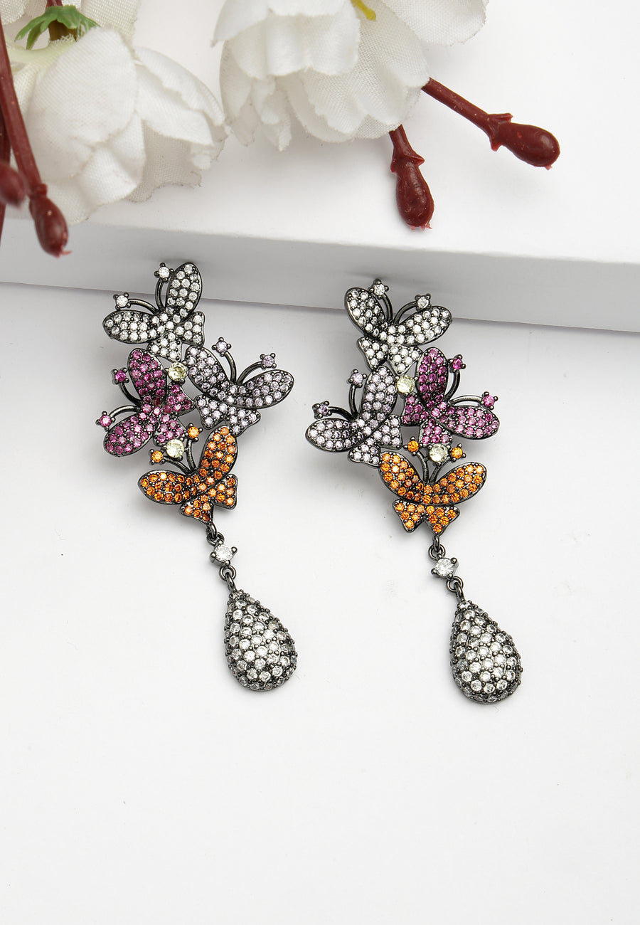 Te wielokolorowe kolczyki w kształcie motyli to fantazyjny i żywy dodatek, który doda zabawnego akcentu każdemu strojowi. Ozdobione bukietem motyli w odcieniach pomarańczy, fioletu, różu i srebra, te kolczyki są...