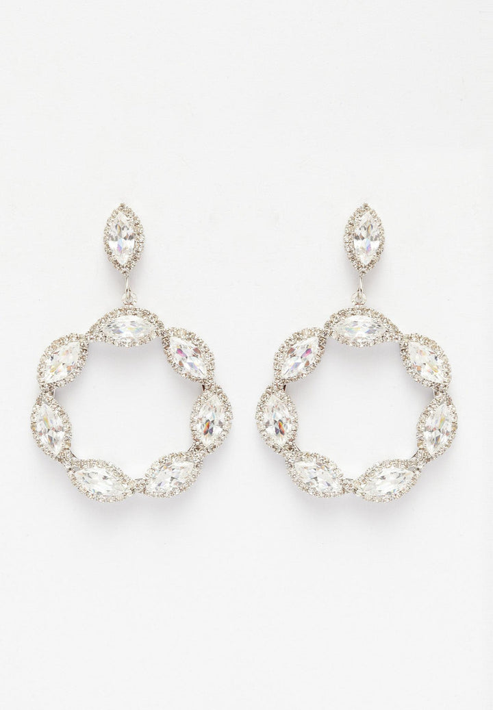 Krystal runde øreringe med rhodinering. Stilen til en soiree med en sølvkjole eller med puffede skuldre for et elegant look.