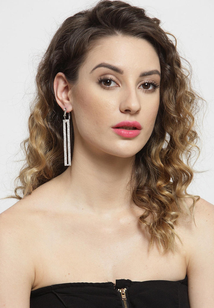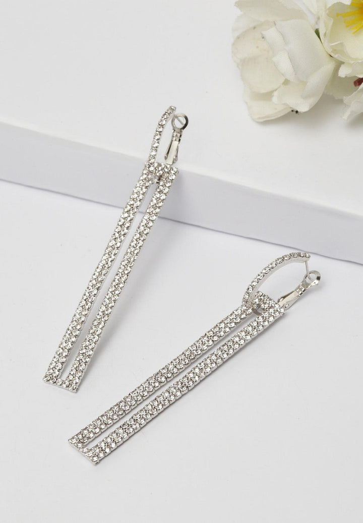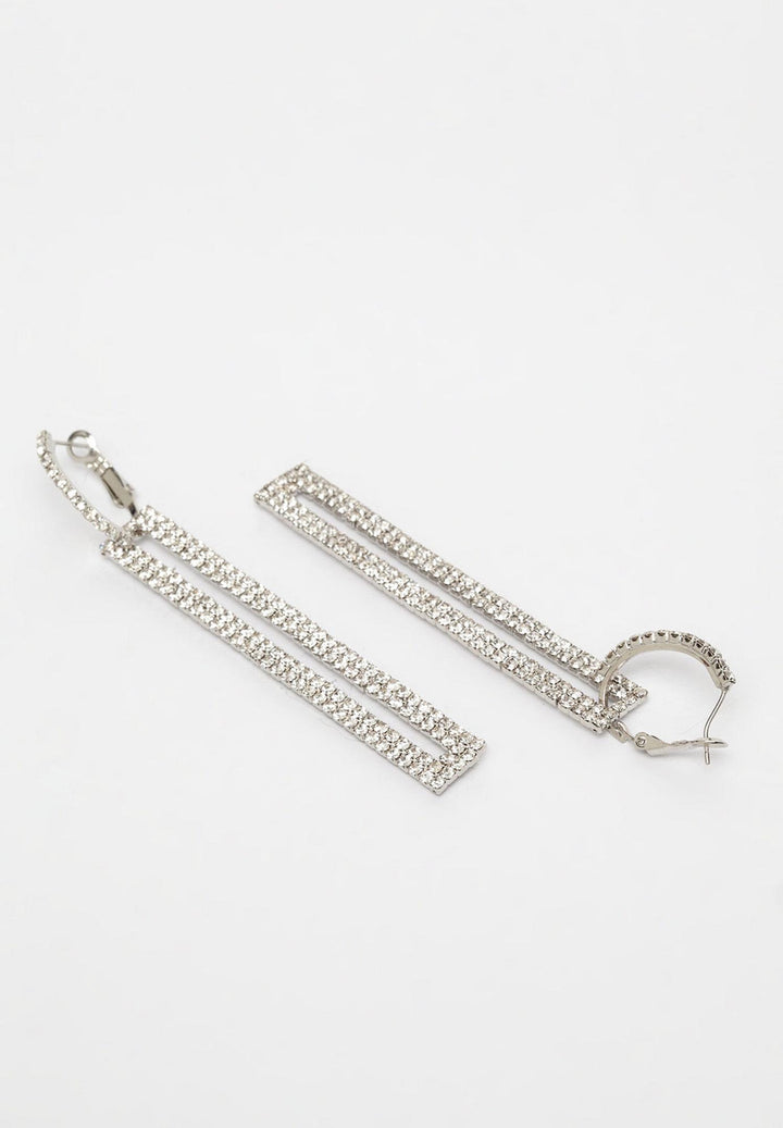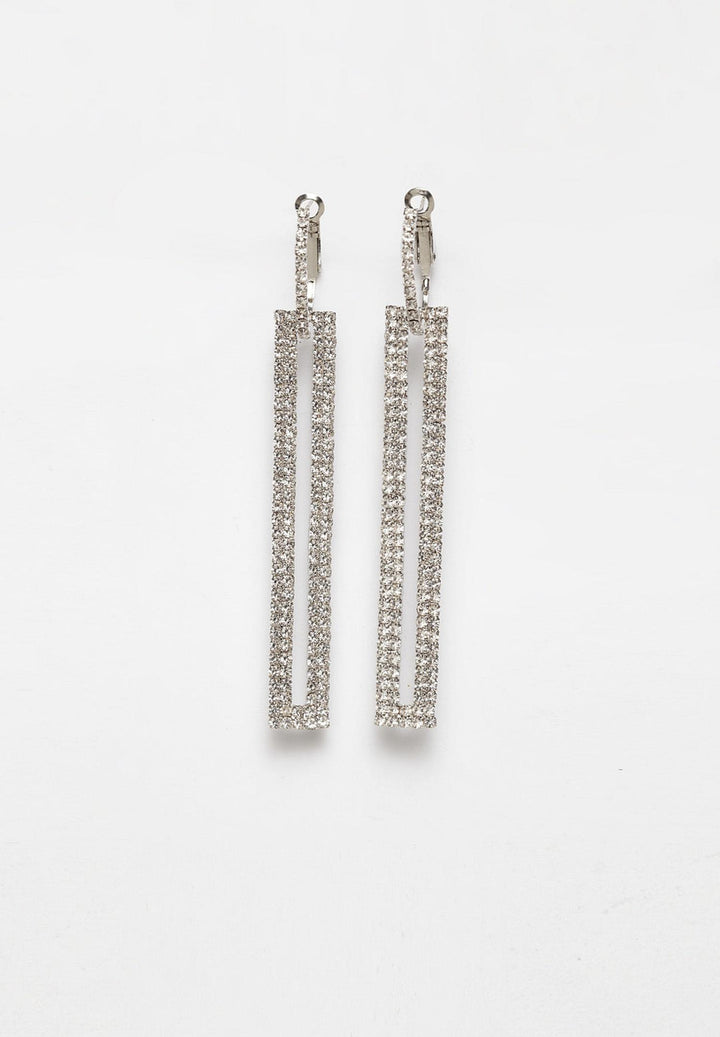 Vi præsenterer vores fantastiske krystalgeometriske rektangulære øreringe i en fængslende sølvtone. Sølvtonen på disse øreringe udstråler en følelse af klassisk raffinement og alsidighed. Det komplementerer ubesværet forskellige outfits og farvepaletter, hvilket gør det til et ideelt tilbehør til enhver lejlighed. Disse øreringe vil tilføje et strejf af sofistikering til en klassisk sort cocktailkjole eller en elegant aftenkjole. De vil komplementere sølvtonerne og tilføje et elegant glimt til dit overordnede look.