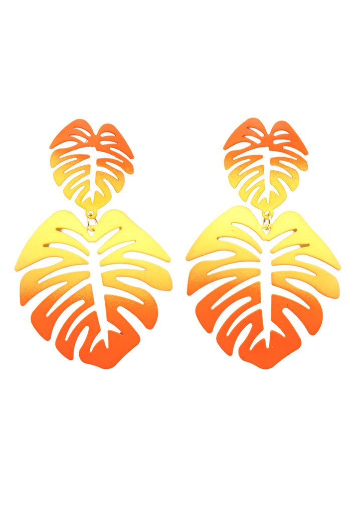 Den lyse orange farve på palmebladsdesignet tilføjer en farvenuance til disse øreringe, hvilket gør dem til en sjov og iøjnefaldende tilføjelse til ethvert outfit. Øreringene er lavet af højkvalitets metal. Øreringene er lette, hvilket gør dem behagelige at have på hele dagen lang. Disse øreringe kan bruges sammen med en simpel t-shirt, denimshorts eller jeans for et afslappet, men trendy look. Hvis du er på vej til stranden, kan disse øreringe parres med en badedragt og en sarong eller cover-up. De kan også bruges sammen med en flydende maxikjole eller en bukser for et afslappet, behageligt strandlook.