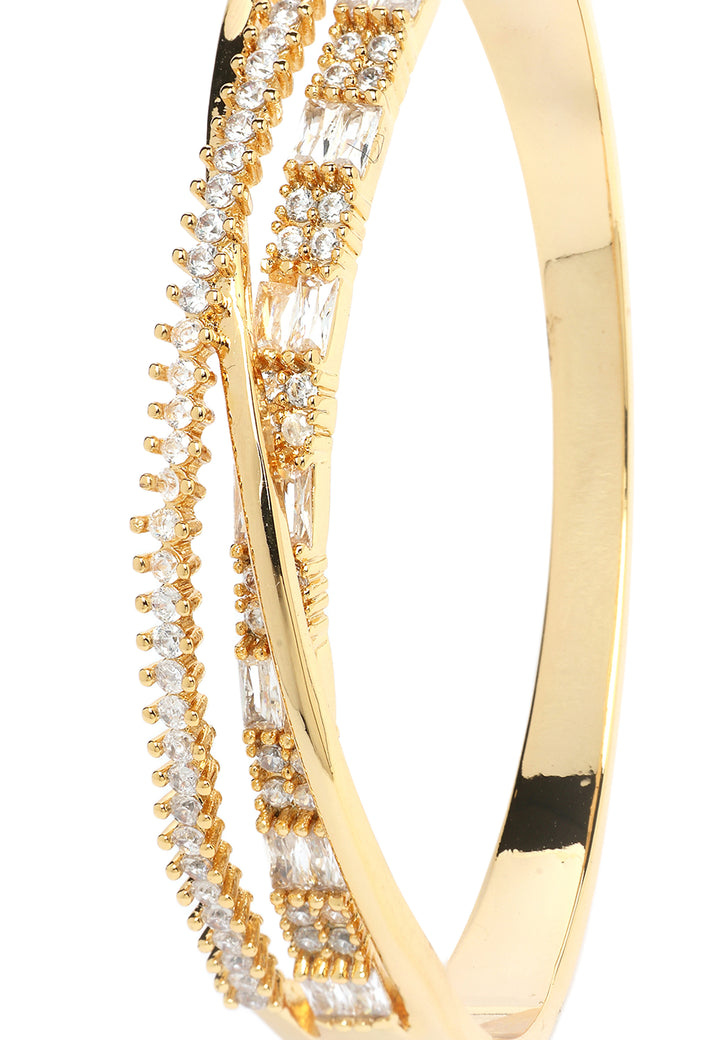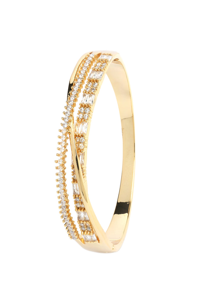 Dette fantastiske armbånd udstråler elegance med sit indviklede, snoede design, der væver guld og glitrende diamanter sammen. Rækker af strålende sten funkler strålende og skaber et fascinerende spil af lys og luksus. Perfekt balanceret mellem tidløs skønhed og moderne flair, er dette stykke et yndefuldt supplement til enhver smykkesamling, ideelt til særlige lejligheder eller til at løfte hverdagsstilen.