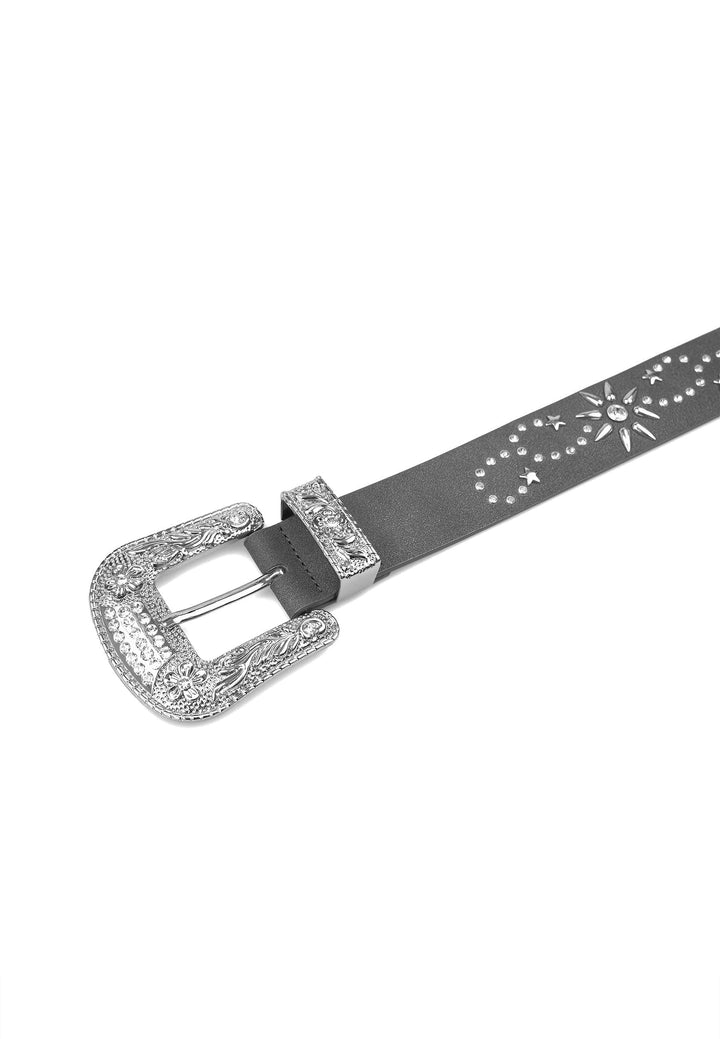 Det sorte designerbælte med præget spænde er et sofistikeret og markant tilbehør, der kombinerer tidløs elegance med håndværk i topklasse. Den rige sorte læderrem udstråler luksus, mens det prægede spænde tilføjer et karakteristisk, tekstureret element, der giver bæltet et løftet, modebevidst udtryk. Det prægede spænde står i smuk kontrast til mere robuste, kantede elementer og giver outfittet en dristig og stilfuld kant.