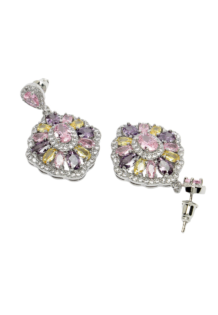 Cubic Zirconia Statement øreringe i flerfarvet, med lilla som hovednuance sammen med accenter af gult og pink, er et fængslende og levende tilbehør, der tilføjer en pop af farver og personlighed til ethvert ensemble. Uanset om de er parret med en elegant cocktailkjole til en aften i byen eller bæres med et afslappet ensemble for at tilføje en ekstra farve, vil Cubic Zirconia Statement øreringe i flerfarvet helt sikkert få dig til at skille sig ud.