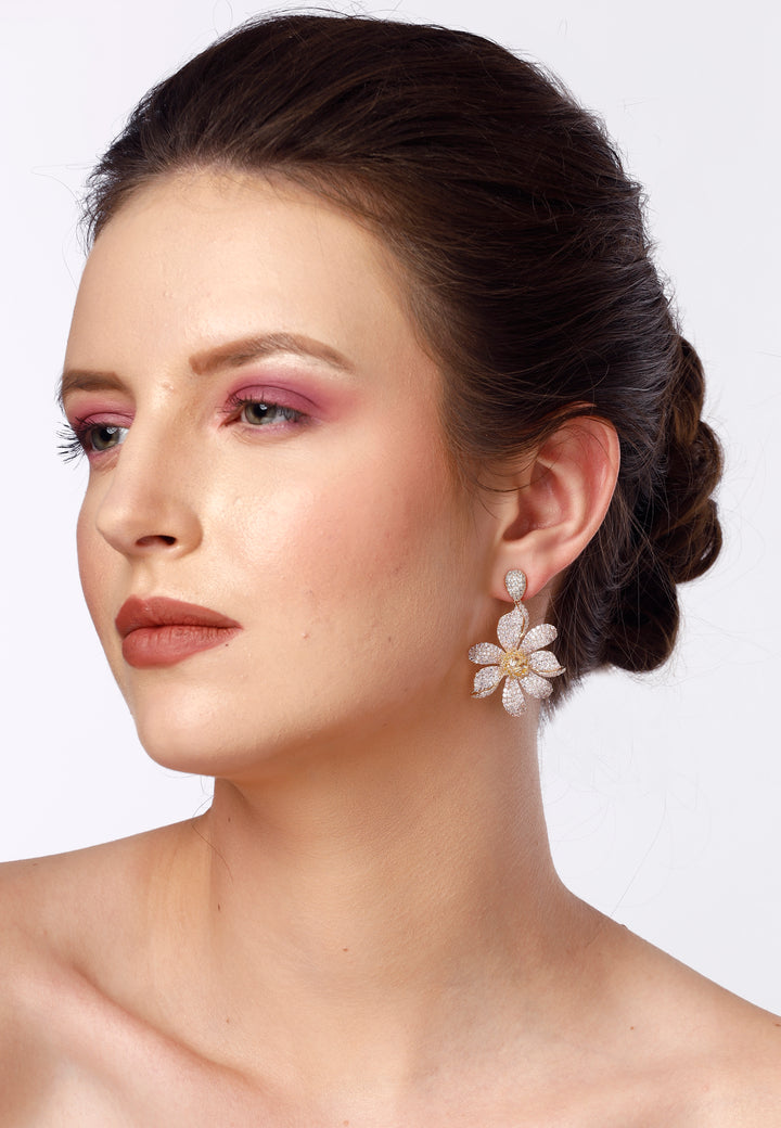 Diva Pretty Floral Drop Earrings i pink cubic zirconia er en dejlig kombination af elegance og femininitet, designet til at tilføje et strejf af charme til ethvert outfit. Den bløde pink nuance af stenene tilføjer et romantisk og delikat præg, mens de facetterede snit forbedrer deres glans og skaber en fængslende glitrende effekt, der fanger lyset med hver bevægelse. Uanset om de bæres som et statement-stykke eller for at tilføje et subtilt farvepift, vil de hæve dit look med deres feminine charme og tidløse appel.