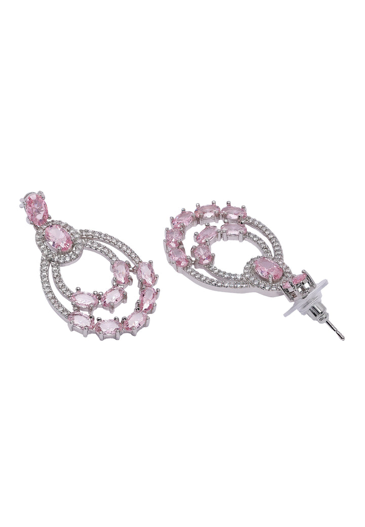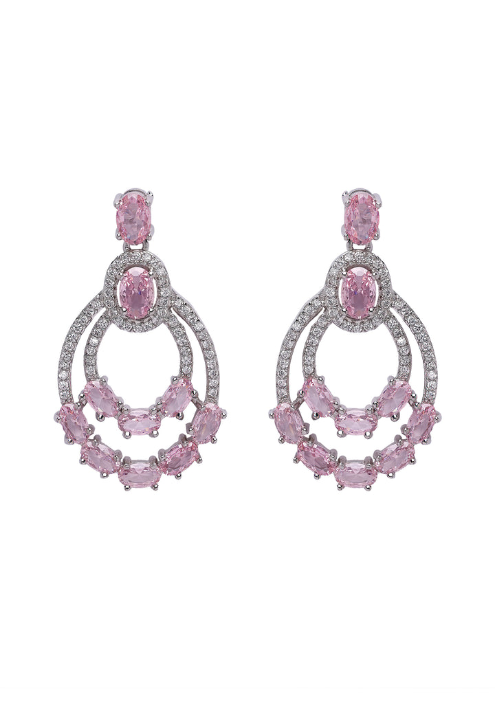 Diva Double Layered Danglers i pink cubic zirconia er en fængslende blanding af elegance og moderne stil fra Diva-kollektionen. Den højkvalitets cubic zirconia efterligner udseendet og glansen af ægte ædelstene, hvilket giver et overkommeligt, men luksuriøst alternativ. Den pink nuance af stenene tilføjer et feminint og romantisk præg, hvilket gør disse øreringe velegnede til forskellige anledninger, fra afslappede udflugter til formelle begivenheder. Disse øreringe er ikke bare accessories; de er et statement-stykke, der fejrer skønhed, farve og sofistikering.