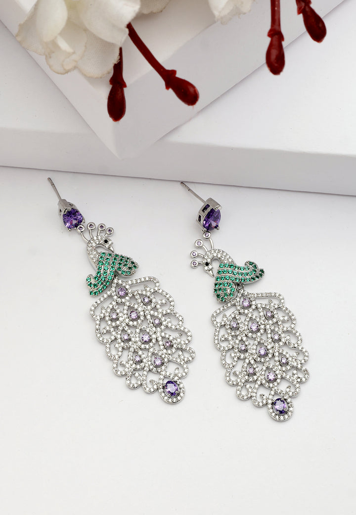 Diva Beautiful Peacock Drop Earrings fra Diva Collection har grønne og blå nuancer med en sølv cubic zirconia fjerdråbe, som er et fantastisk tilbehør. Disse øreringe har sandsynligvis et design inspireret af påfuglefjer, der er kendt for deres livlige farver og intrikate mønstre. Fjerdråben er i sølv, hvilket tilføjer et strejf af elegance. Bær disse øreringe med en simpel bluse eller kjole for at tilføje et farverigt og elegant touch til dit hverdagstøj. Det påfuglinspirerede design gør dem til et iøjnefaldende tilbehør både dag og nat. Disse øreringe vil helt sikkert være et fremtrædende stykke i enhver smykkesamling.