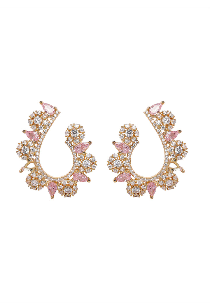 Et udbrud af solskin til dine ører! Den unikke halvmåneform, besat med en strålende række af funklende pink sten, skaber et legende og iøjnefaldende look. De er den perfekte størrelse til at tilføje et strejf af glans og personlighed til ethvert outfit.