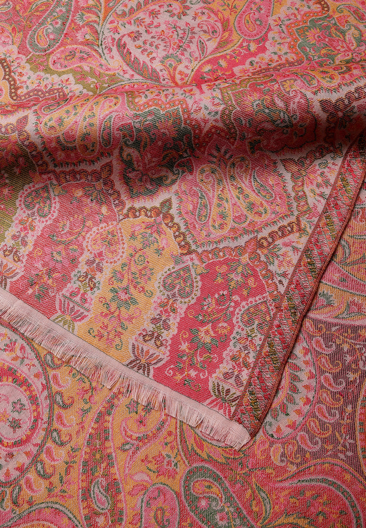 Smukke Jamawar-designs på et blødt imiteret pashmina-stof og traditionelt kunstværk. Populær siden Mughal-æraen. Denne traditionelle stole i Kashmiri-stil har indviklet design og kvalitet.