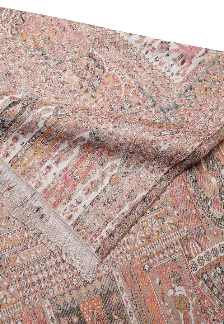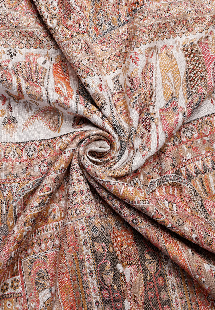Smukke Jamawar-designs på et blødt imiteret pashmina-stof og traditionelt kunstværk. Populær siden Mughal-æraen. Denne traditionelle stole i Kashmiri-stil har indviklet design og kvalitet.