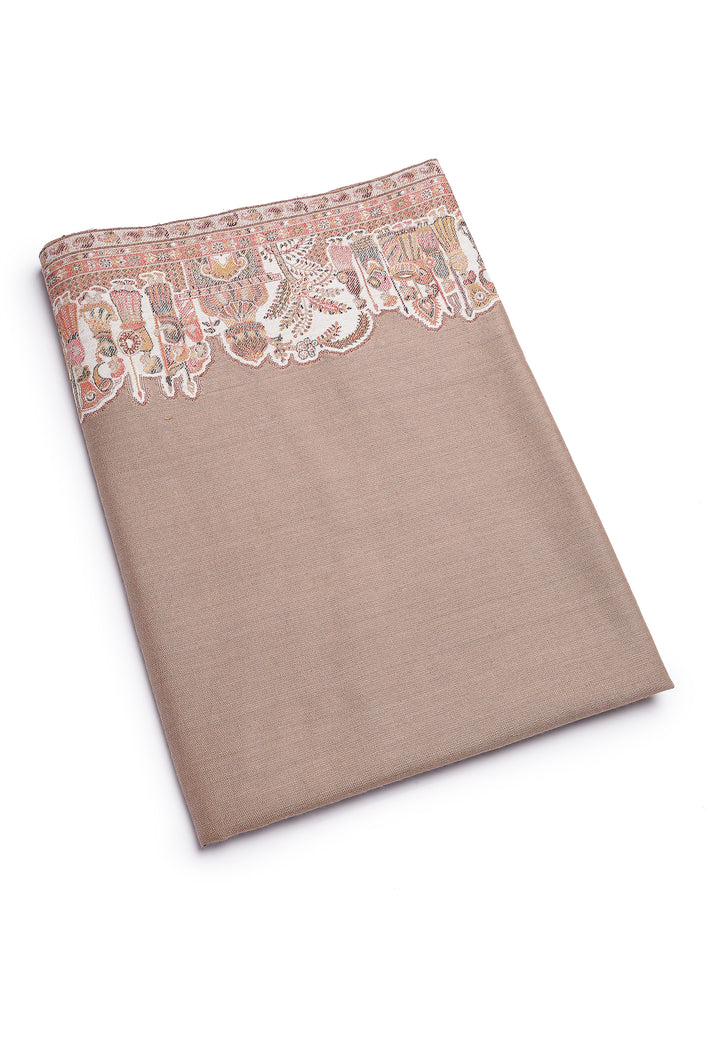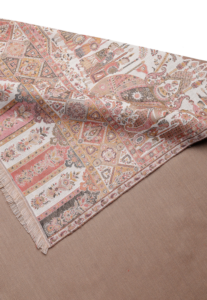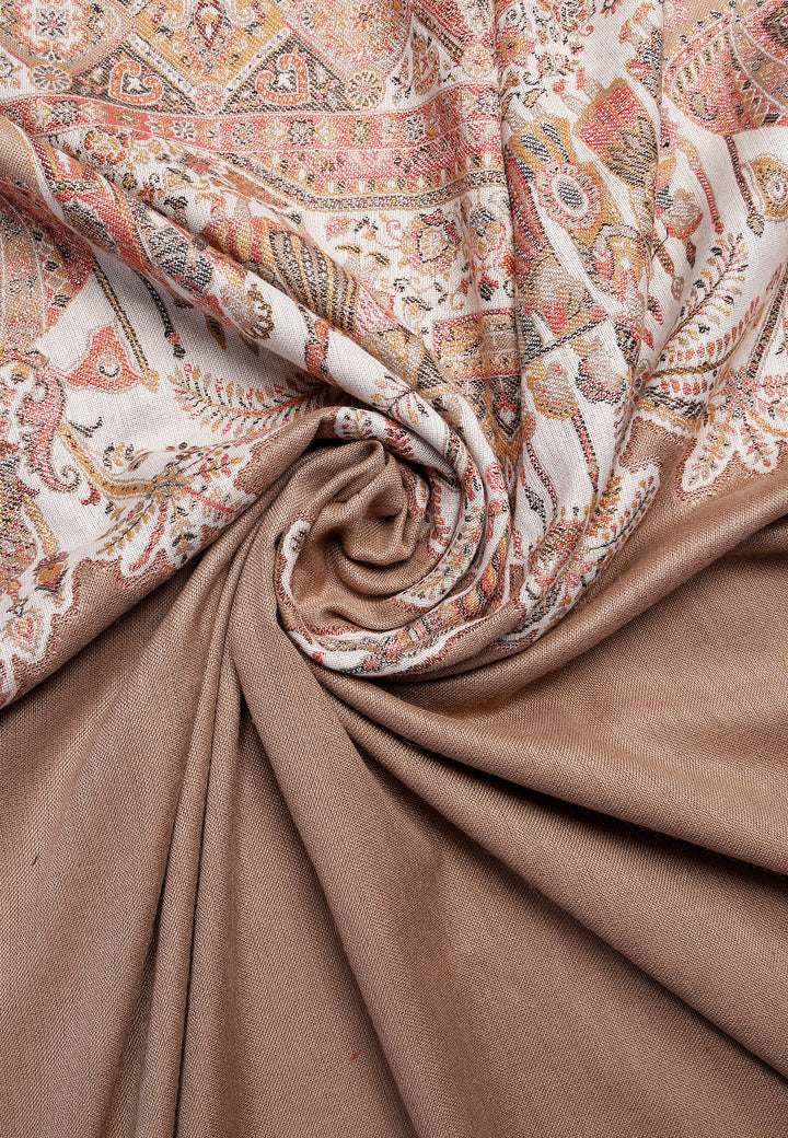Smukke Jamawar-designs på et blødt imiteret pashmina-stof og traditionelt kunstværk. Populær siden Mughal-æraen. Denne traditionelle stole i Kashmiri-stil har indviklet design og kvalitet.
