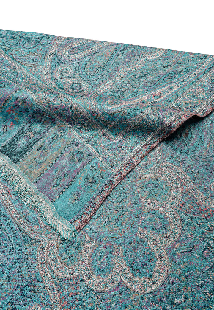 Smukke Jamawar-designs på et blødt imiteret pashmina-stof og traditionelt kunstværk. Populær siden Mughal-æraen. Denne traditionelle stole i Kashmiri-stil har indviklet design og kvalitet.