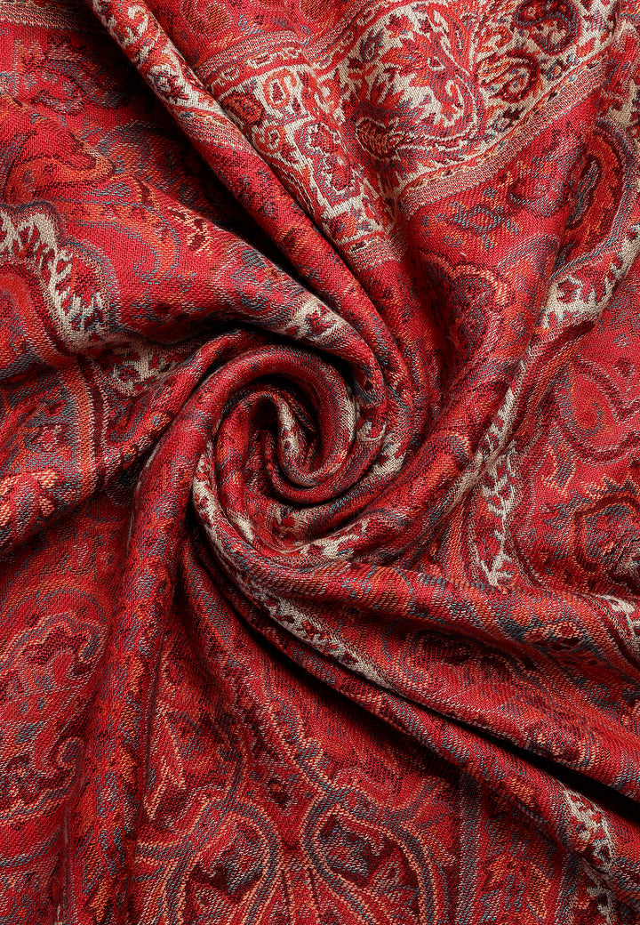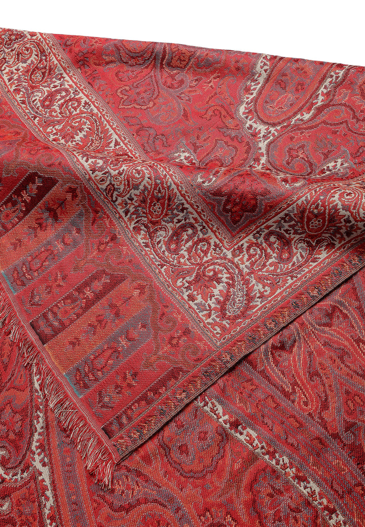 Smukke Jamawar-designs på et blødt imiteret pashmina-stof og traditionelt kunstværk. Populær siden Mughal-æraen. Denne traditionelle stole i Kashmiri-stil har indviklet design og kvalitet.