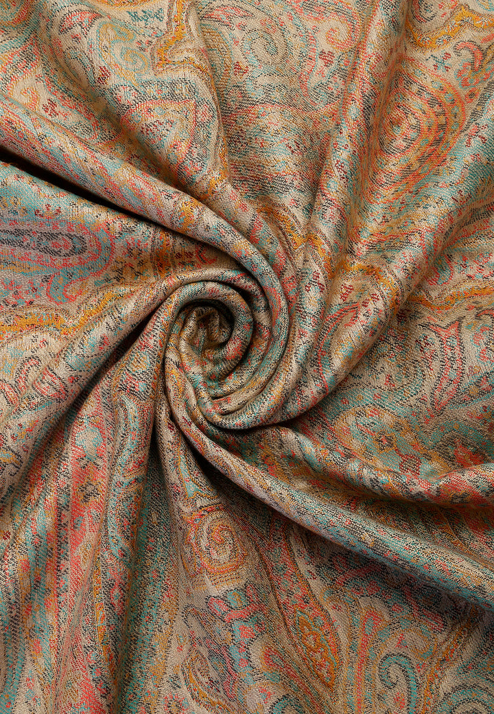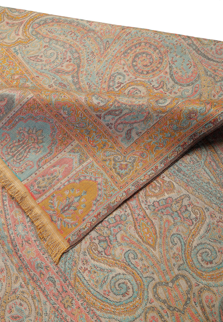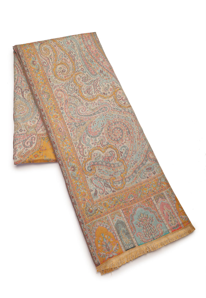 Smukke Jamawar-designs på et blødt imiteret pashmina-stof og traditionelt kunstværk. Populær siden Mughal-æraen. Denne traditionelle stole i Kashmiri-stil har indviklet design og kvalitet.
